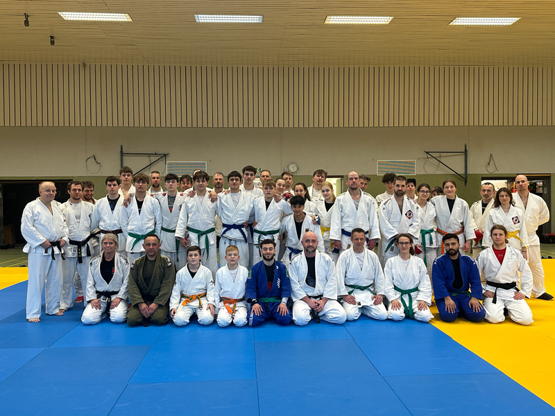 Am 28. März war der Judo-Club Erbach Ausrichter eines Landestechniklehrgangs. Als Referent war Viktor Schegurow, Träger des 3. Dan Ju-Jutsu, anwesend. Das Thema lautete „Dynamisches Ju-Jutsu: Schlag, Clinch und Boden“. 45 Teilnehmer konnte der Lehrgang anlocken, eine sehr gute Teilnehmerzahl. Die Alterspanne reichte von jung bis alt und nahezu alle Gürtelfarben waren auf der vollen Mattenfläche vertreten. Viktor meisterte die Herausforderung, Sportler*innen verschiedenster Erfahrungsstufen abzuholen und die Themen des Lehrgangs begreiflich zu machen, mit Bravour.